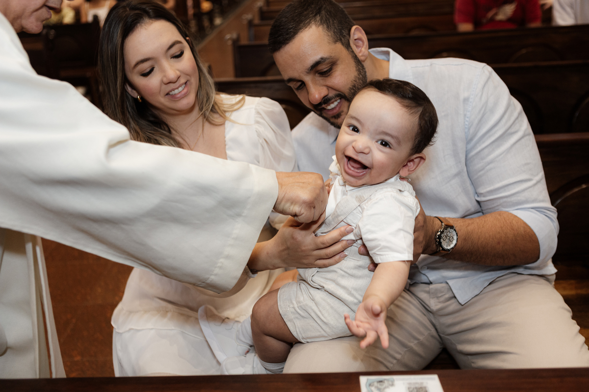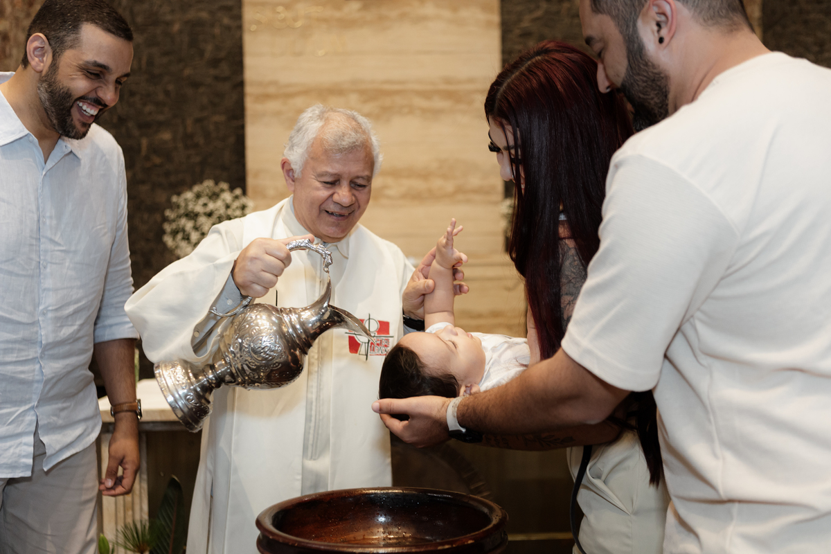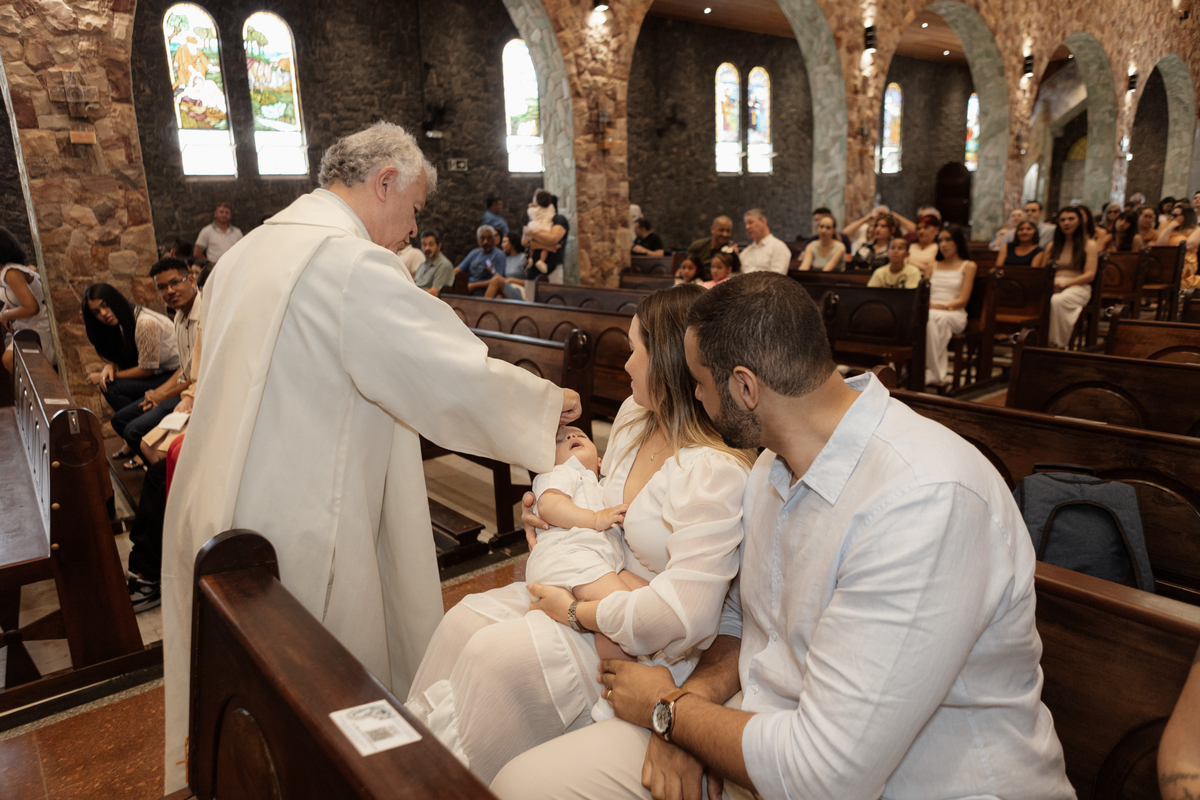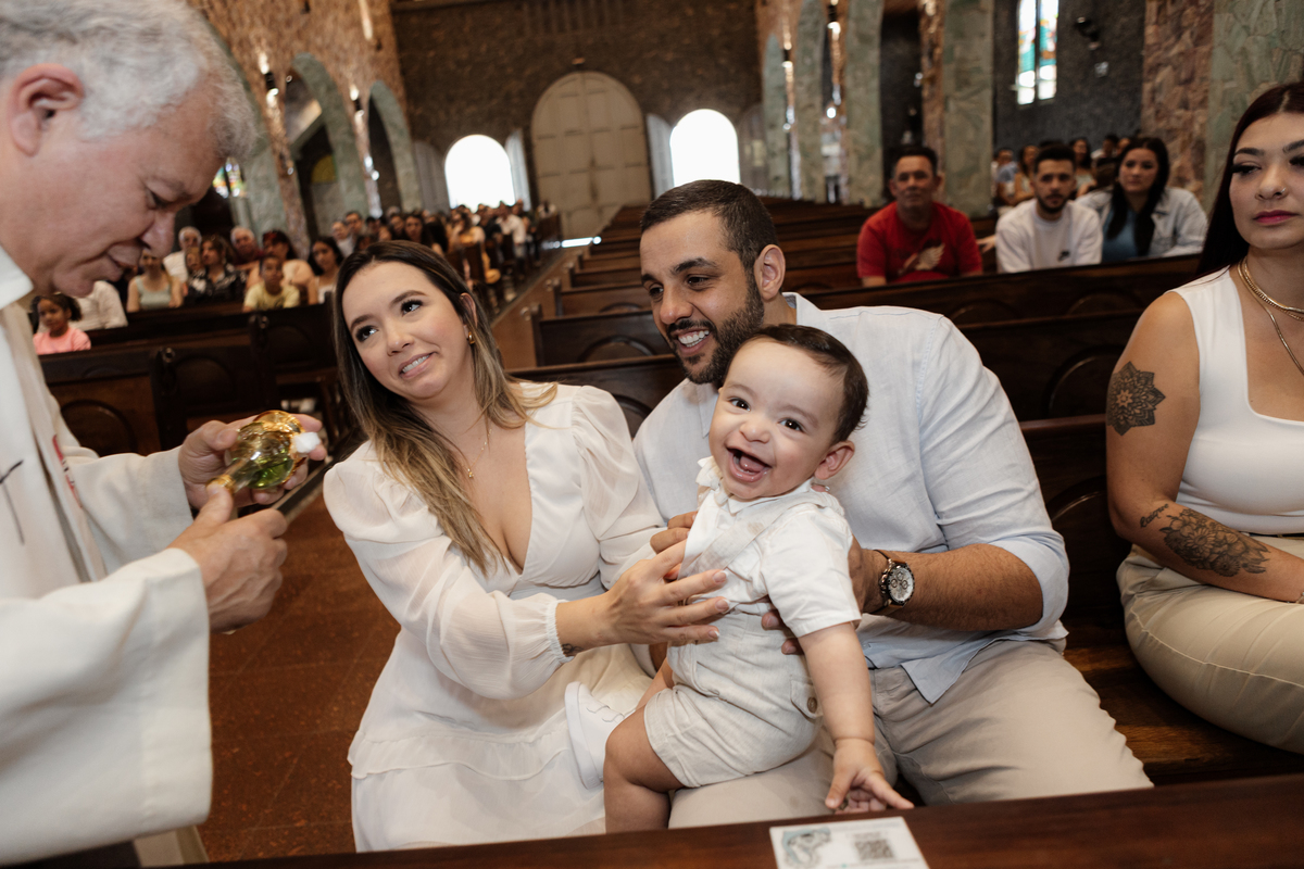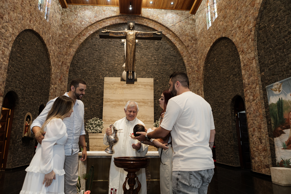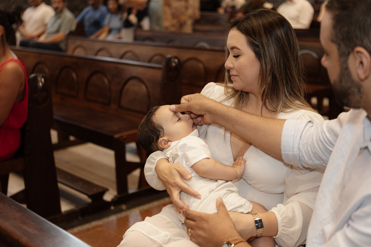 O batismo é o primeiro grande evento na vida de uma criança, e como fotógrafa em Mauá, entendo a importância de eternizar cada detalhe com sensibilidade e profissionalismo. Este registro foi realizado na Igreja Matriz de Mauá (Paróquia Imaculada Conceição), um cenário clássico e emocionante para as famílias da nossa região.