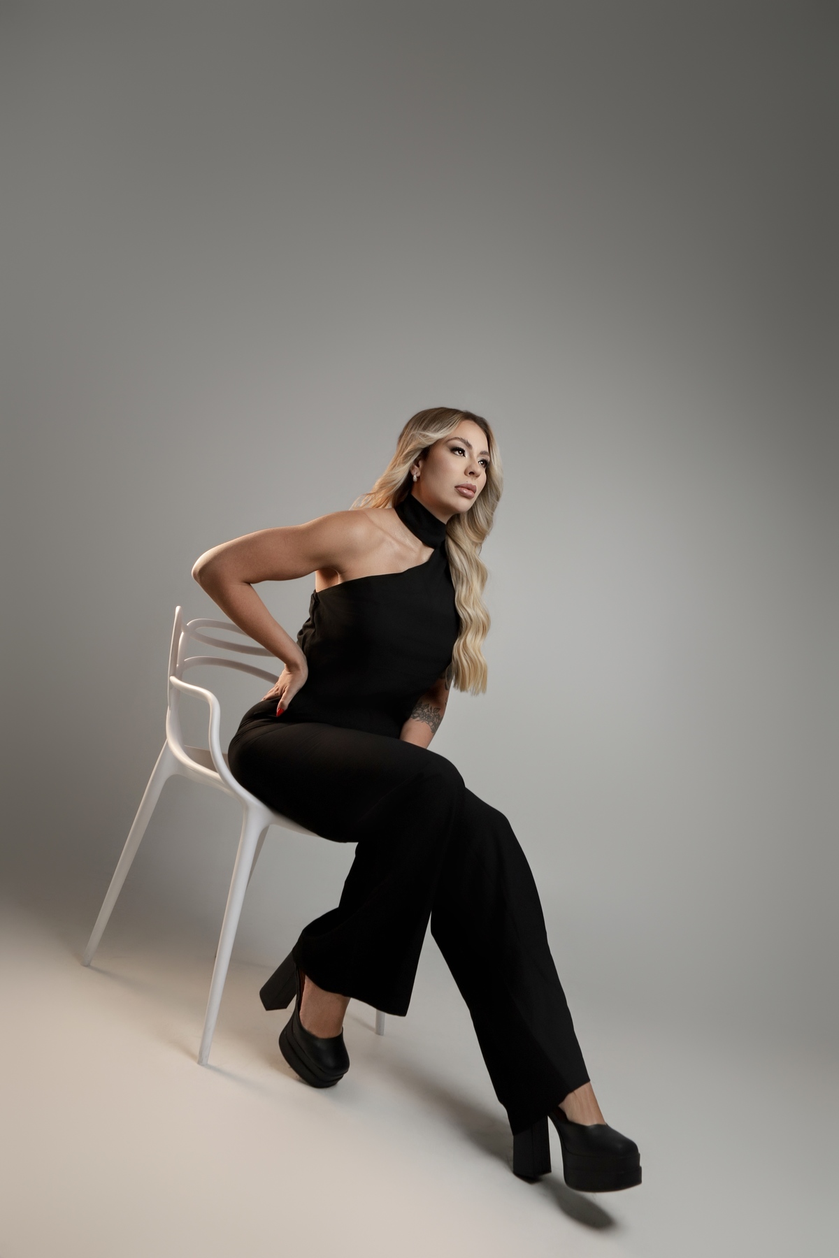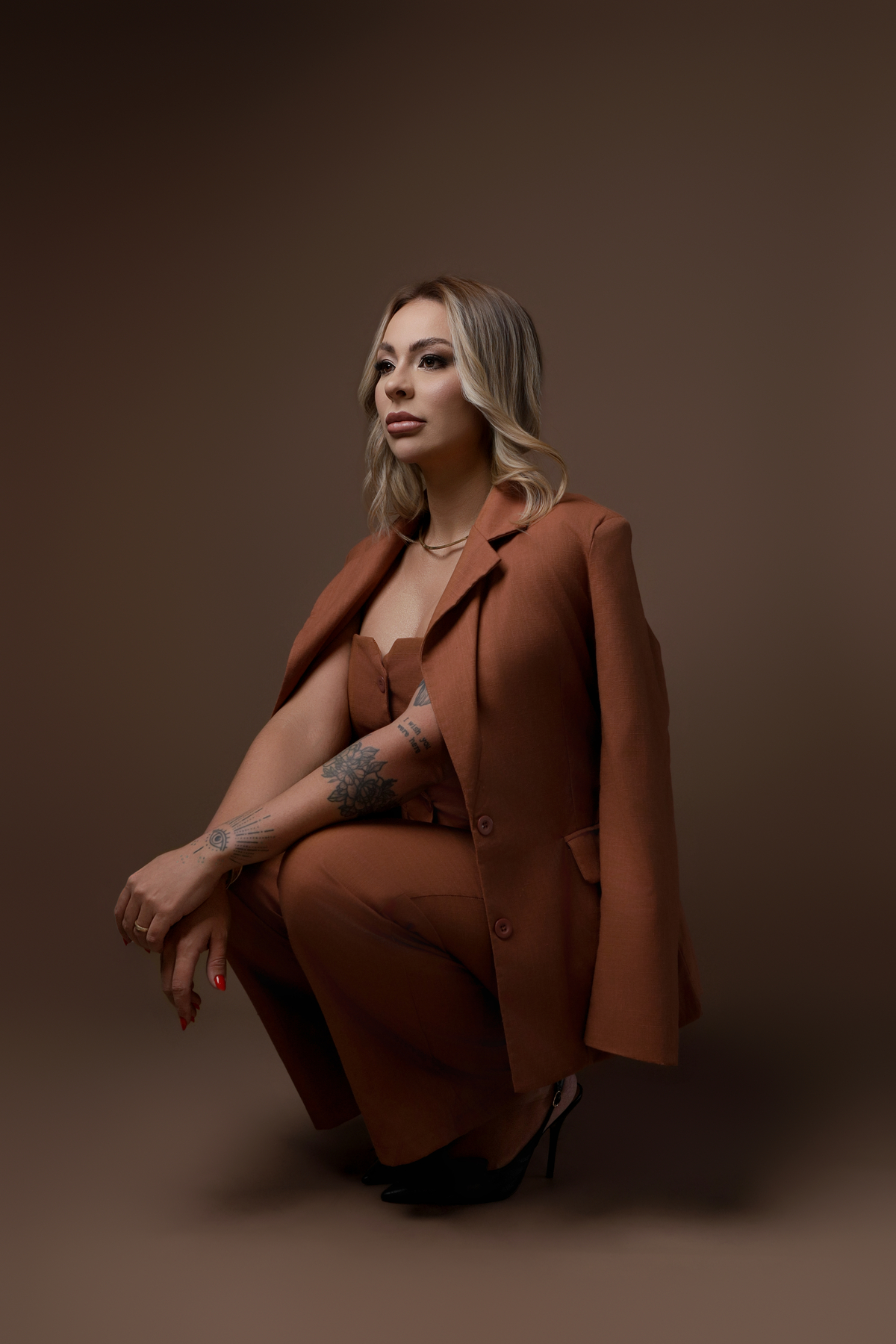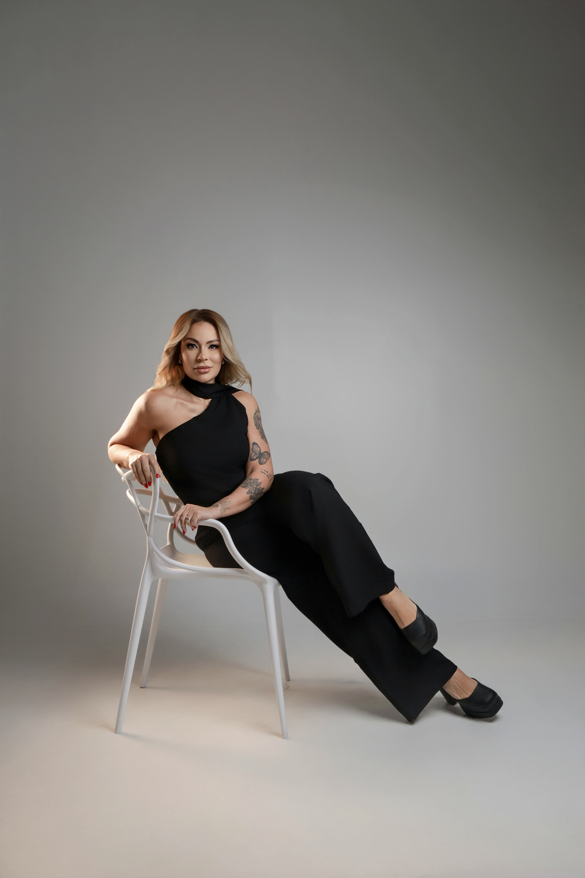 O objetivo deste ensaio foi fugir do óbvio "jaleco e cadeira". Trabalhamos uma curadoria de looks em cores neutras, que trazem sofisticação e profissionalismo sem deixar a imagem engessada. A escolha das roupas reflete a personalidade da Tainá, permitindo que ela transmita autoridade de forma leve e moderna.
